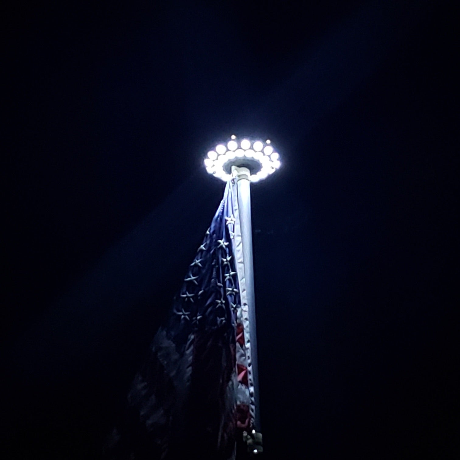 The triple topper’s LEDs will not pollute the surrounding sky with its illumination. The Solar Flagpole Triple Top Light produces 2,000 Lumens down and 200 Lumens upward. A powerful 6 volts solar panel feeds a Lithium-Ion battery pack rated at 4400 mAh (milliamps).